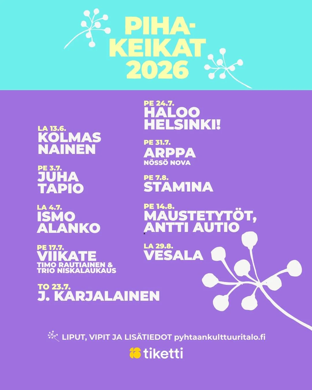 Näet Suomen parhaat artistit koivujen katveessa kesän pihakeikoilla.